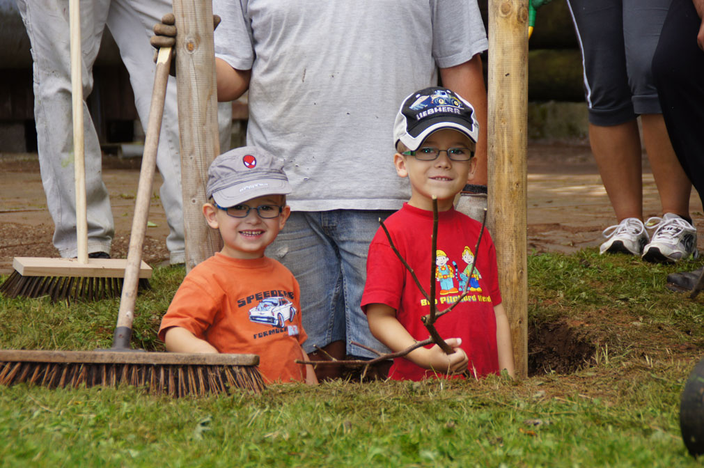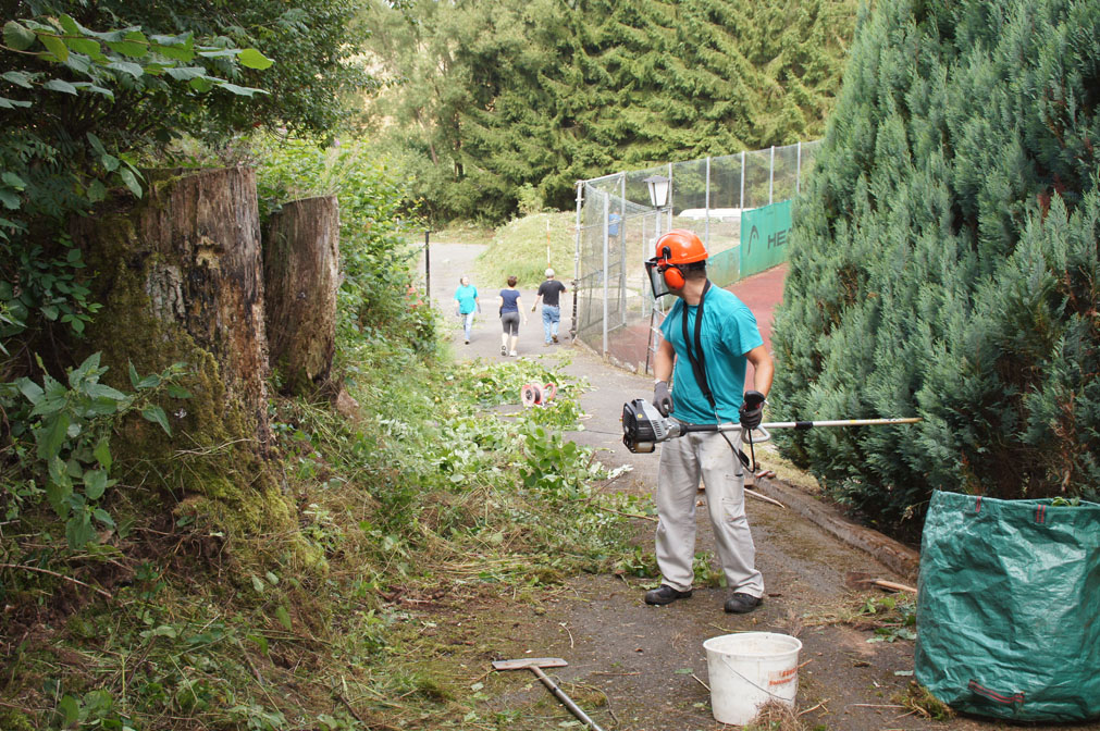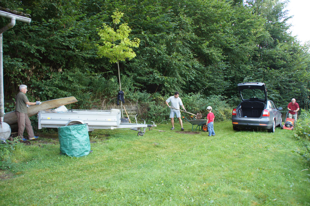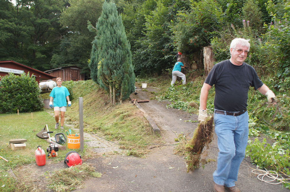 ... geschnitten, gemäht, gehackt, aufgeräumt, ein Schachbrett ausgegraben, das Loch für die Karl-Junk-Eiche gebuddelt, der Jahneichen-Gedenkstein geschrubbt und gut gegessen.