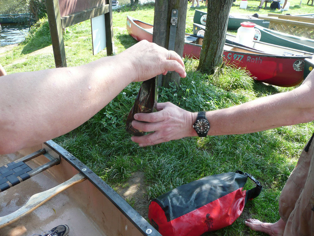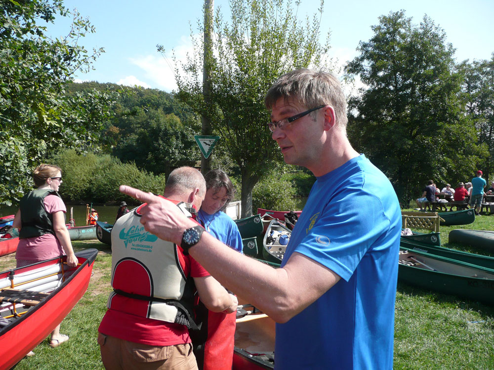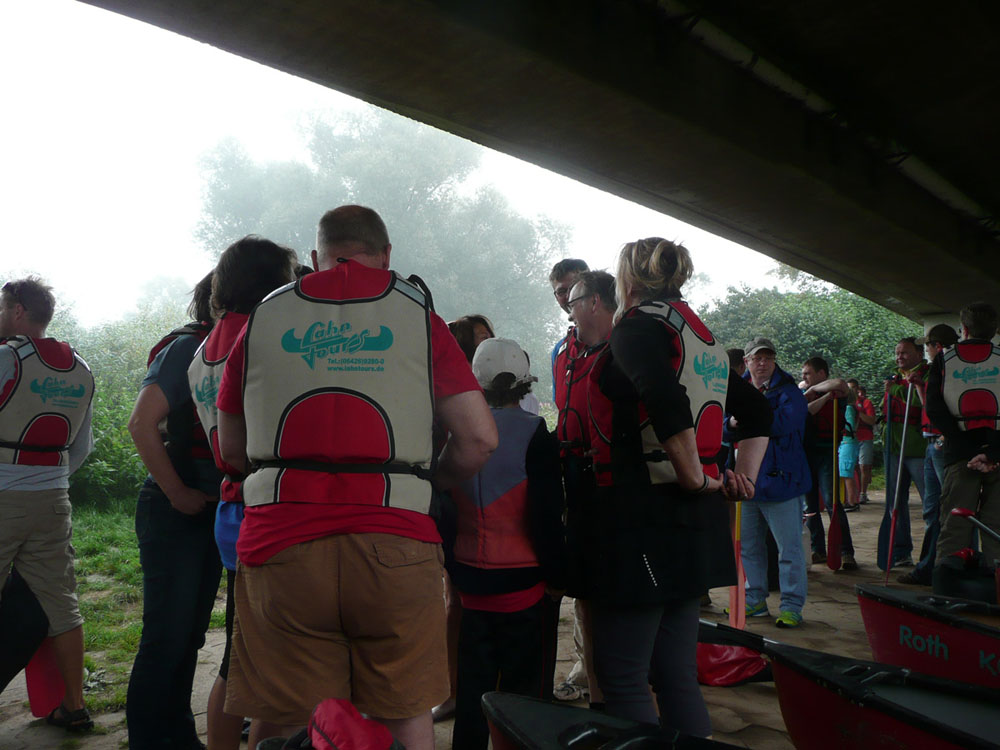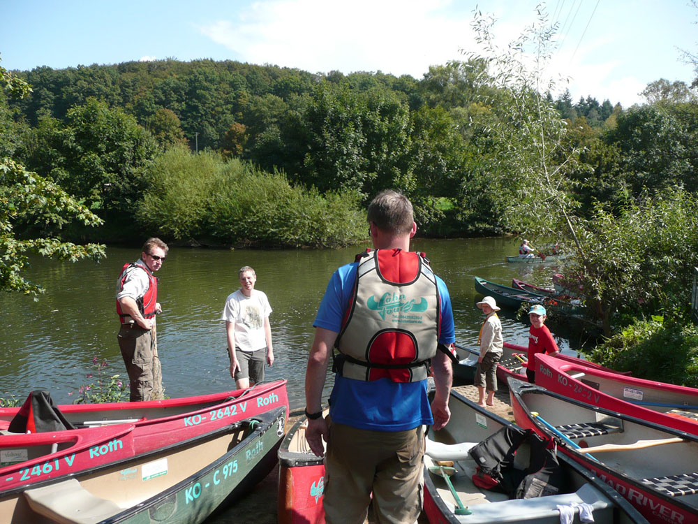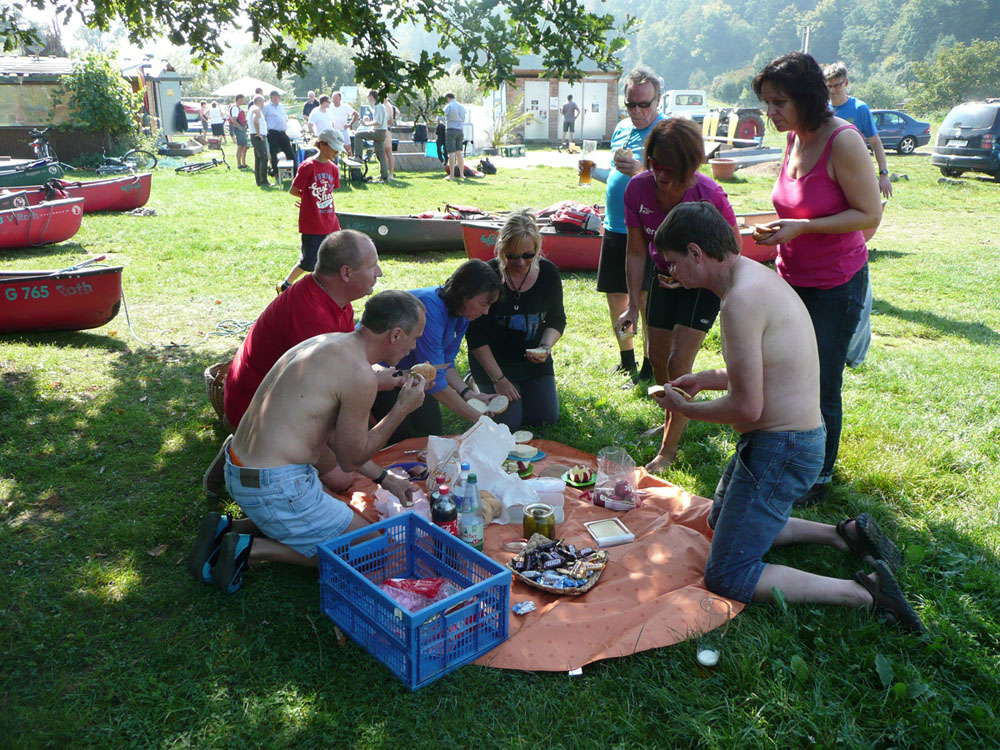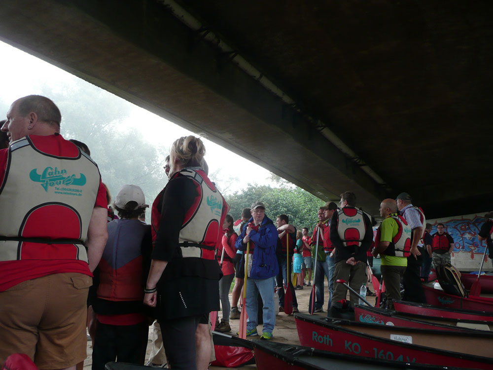 Aufgeteilt war die Gruppe auf vier Boote. Die Besatzung eines Bootes musste leider wegen Fehlern des Steuermannes (frau) das Boot während der Fahrt auf der Lahn verlassen. Während die anderen drei Boote schon am Rastplatz angelangt waren, beschäftigte sich die Besatzung des gekenterten Bootes mit dem Auffischen der verloren gegangenen Utensilien.