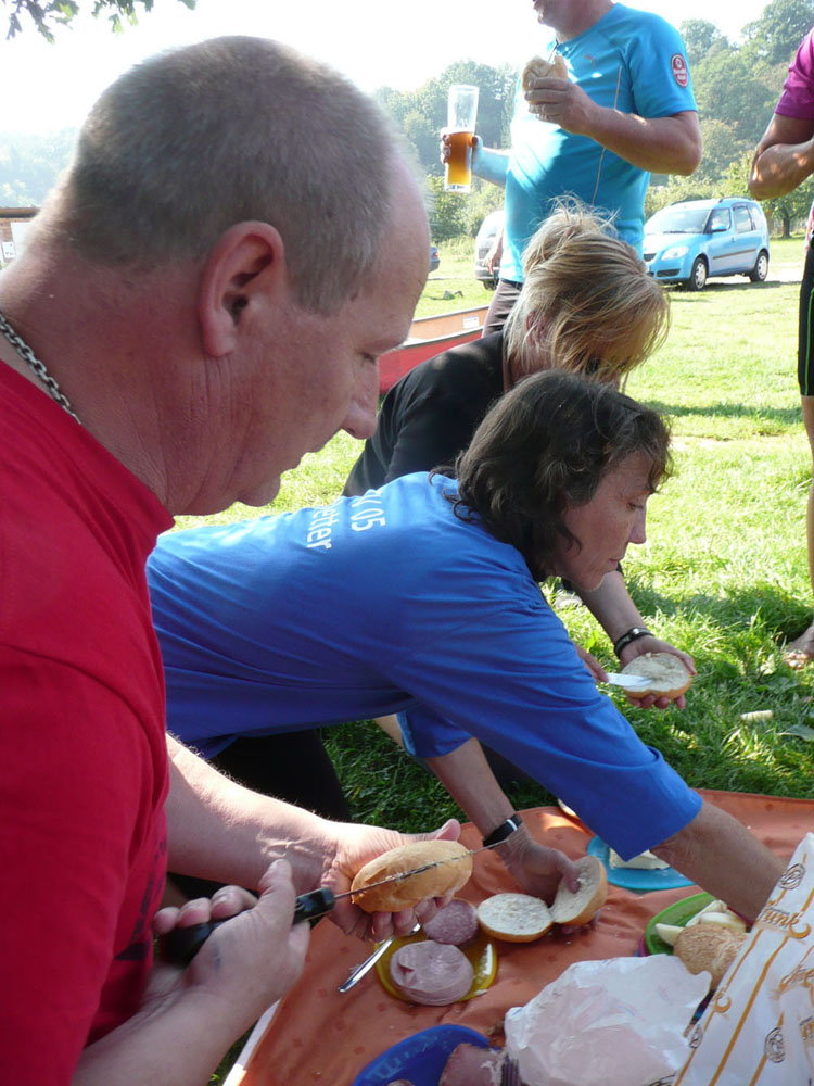 Nachdem die „nasse Crew“ auch den Rastplatz erreicht hatte, war die Schadenfreude natürlich groß.