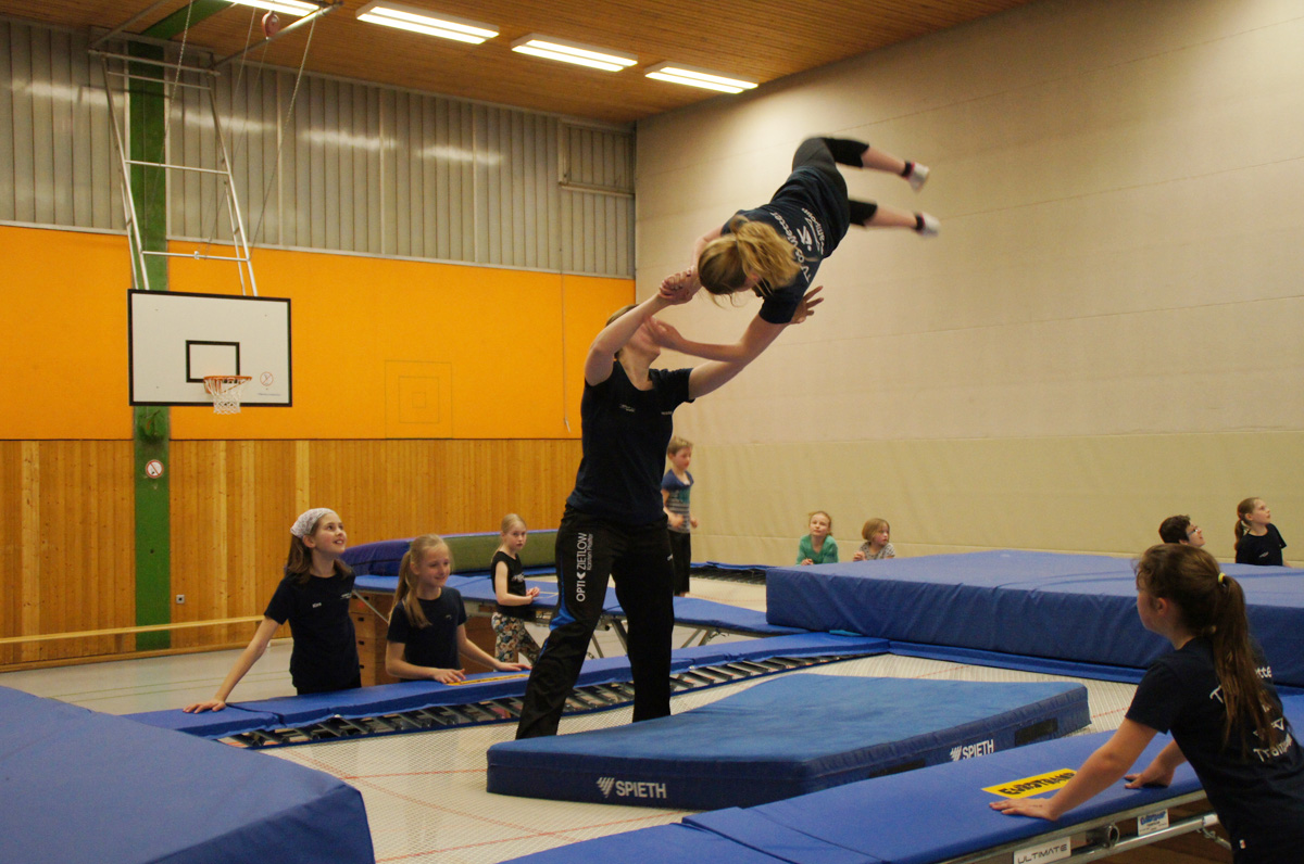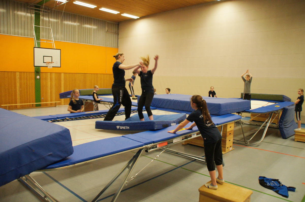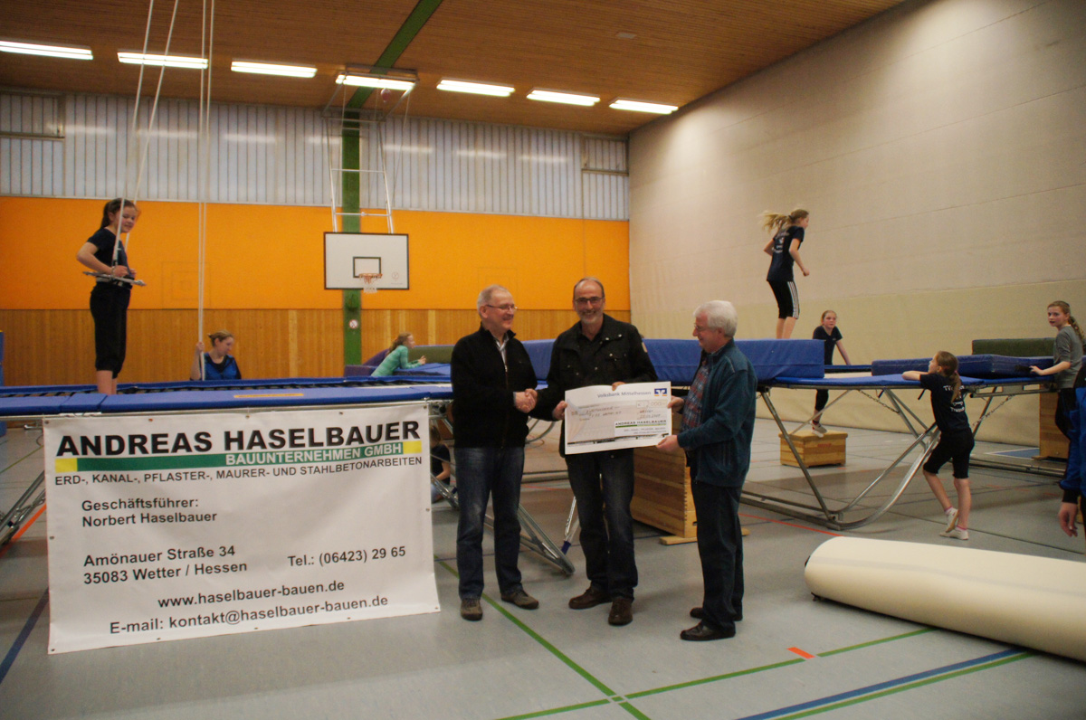 Mit der Spende der Firma Andreas Haselbauer in Höhe von 2.000 € konnte der Turnverein für die Trampoliner einen Schraubensalto-Gürtel sowie eine Icepad-Spezialmatte anschaffen. Mit diesen Hilfsmitteln wird das Einüben von neuen, schwierigen Sprüngen erleichtert. Die Kinder hatten sichtlich ihren Spaß damit!