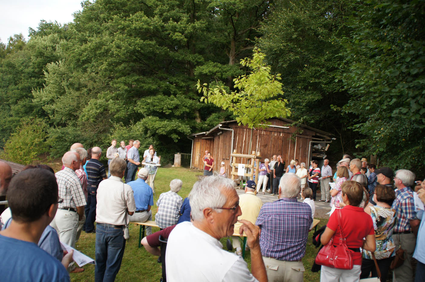 Unter den Jahneichen versetzte zunächst der 1. Vorsitzende Karl-Heinz Kajewski die Gäste in die Zeit von 1913, als die Turner des noch jungen TV den Weg zum Festplatz zu den Hügelsbirken mit Eichen bepflanzten und diesen Platz dem Vater der Deutschen Turnkunst Jahn widmeten.