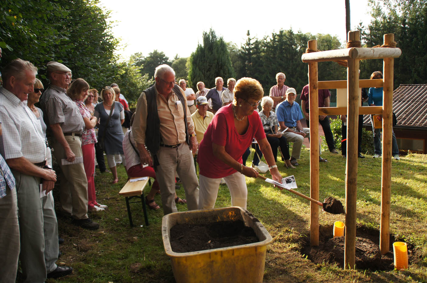Lore Junk, Karls Witwe, war die Ehre vergönnt, der Karl-Junk-Eiche die erste Schippe Erde zum weiteren Gedeihen mitzugeben und damit die Pflanzung einzuleiten.