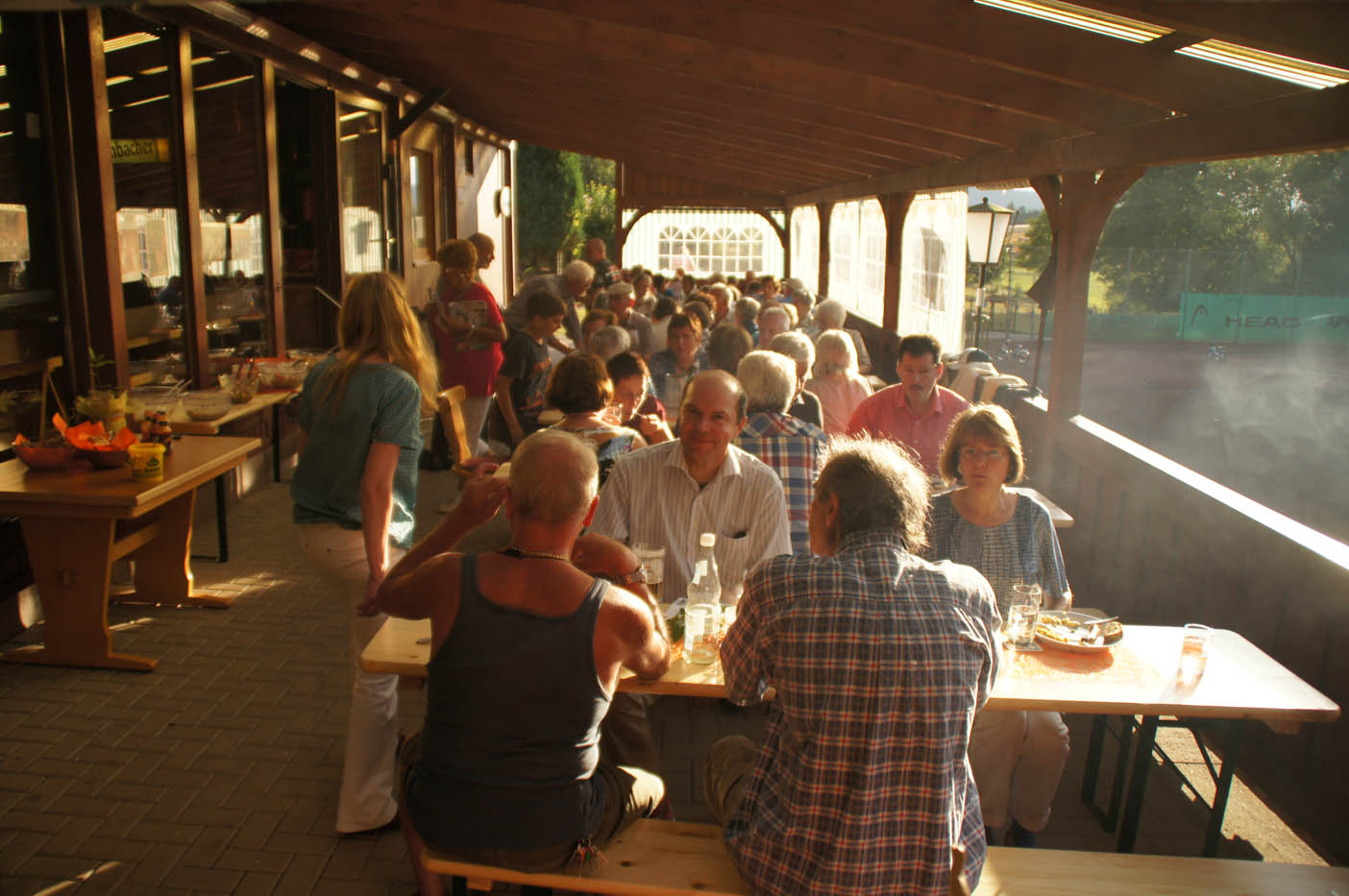 ... seine Familienangehörigen, sein Jahrgang 34/45, seine Hobbyvolleyballer, seine ehemaligen Vorstandsmitglieder und weitere Freunde zum Vereinsheim des TV 05 gekommen – viele zu Fuß, wie in alten Zeiten.