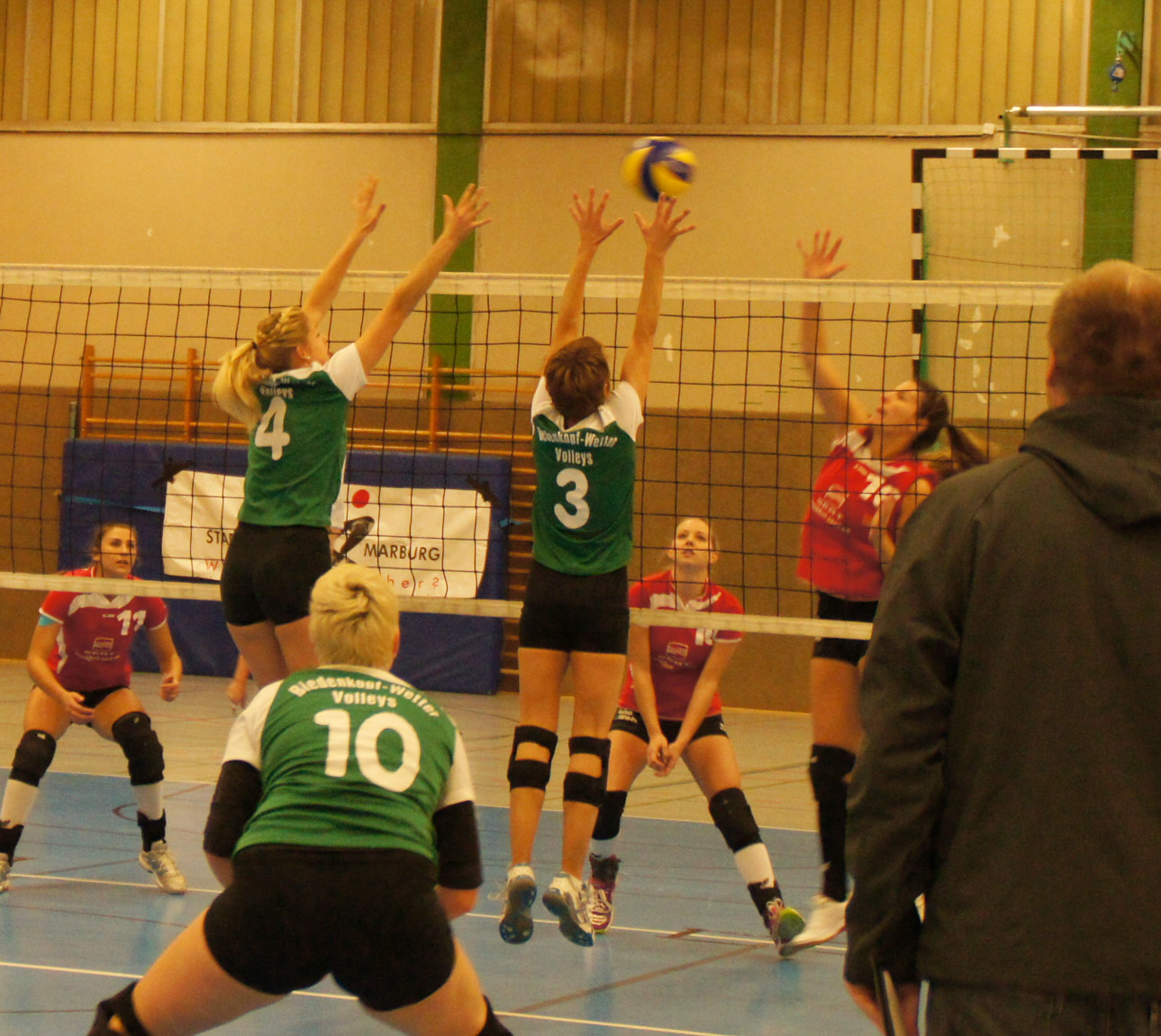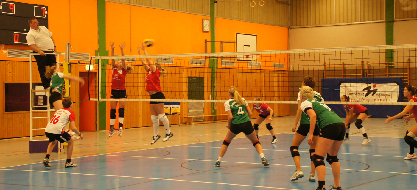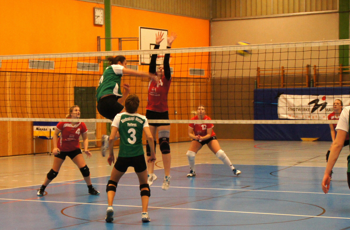 Biedenkopf-Wetter Volleys : TG Groß-Karben 2:3 mit Bildergalerie !! Mit einer routinierten Renate Kern im Zuspiel legten die Biedenkopf-Wetter Volleys einen besseren Start hin als die Gäste und holten sich verdient den ersten Satz. |