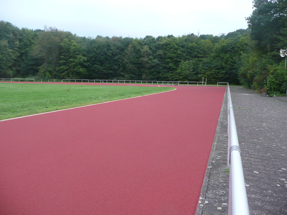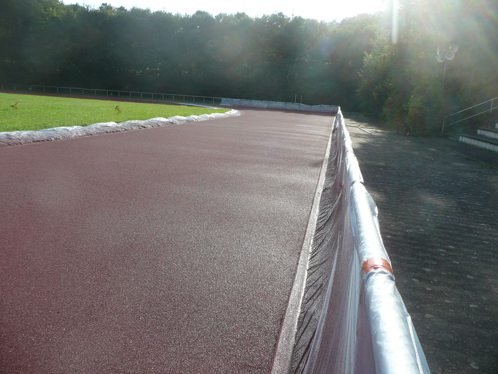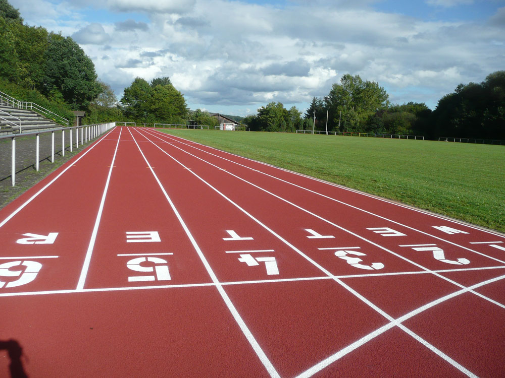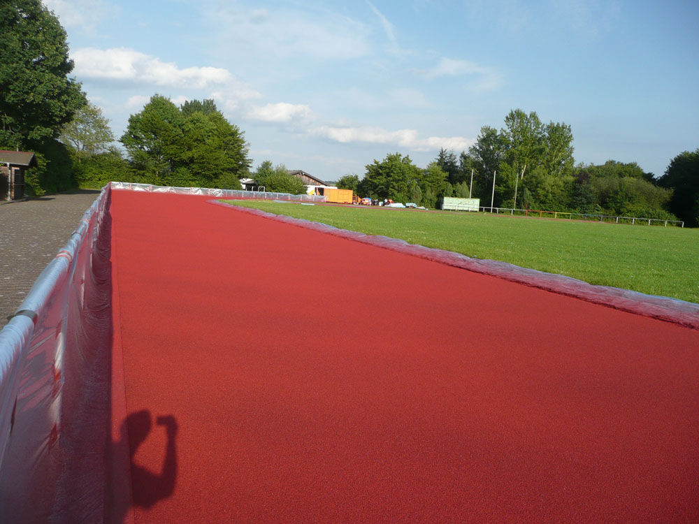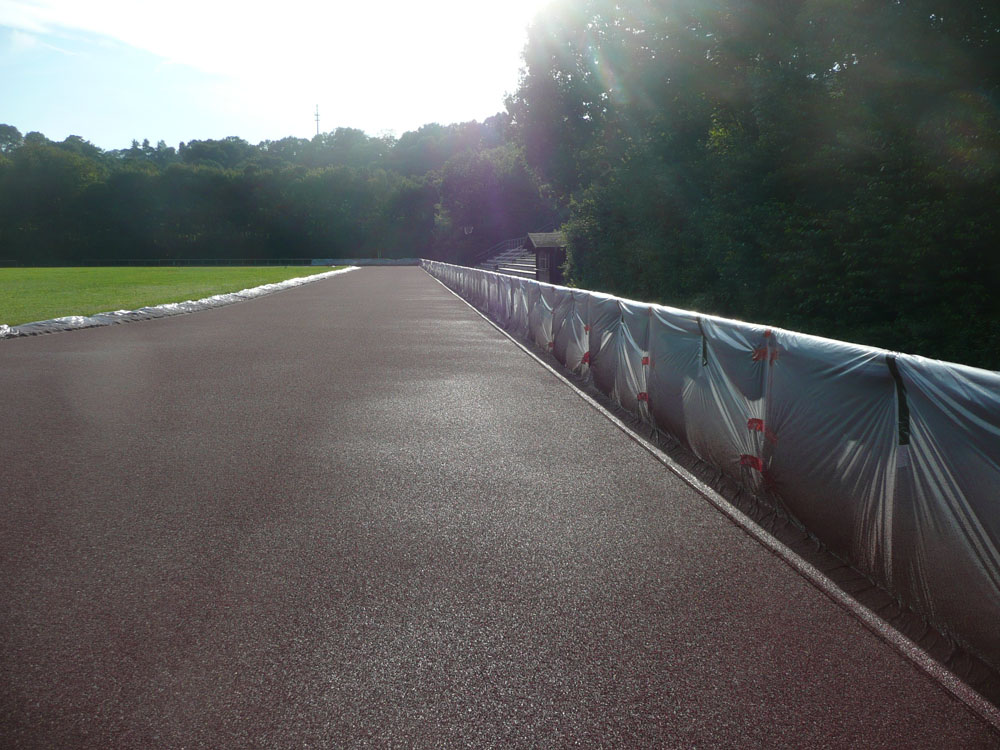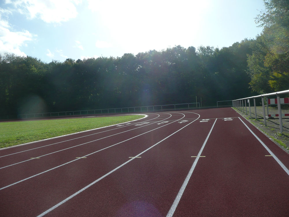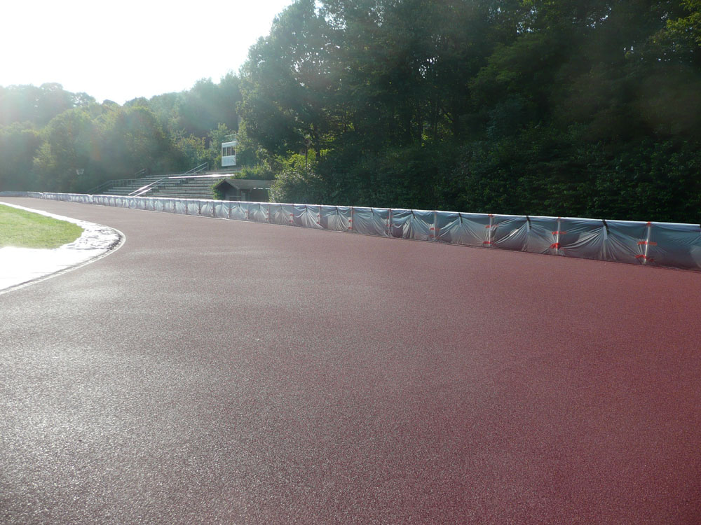 Nachdem im letzten Jahr in den Sommerferien mit den Sanierungsarbeiten der Laufbahn gestartet wrude, ist in diesem Jahr kurz vor den Herbstferien das Ziel erreicht: Das Wollenbergstadion erstrahlt im frischen Rot der neuen Polytan-Kunststoffbahn! Auch die Außenanlage mit der Sprunggrube ist wieder in einem ansehnlichen Zustand!