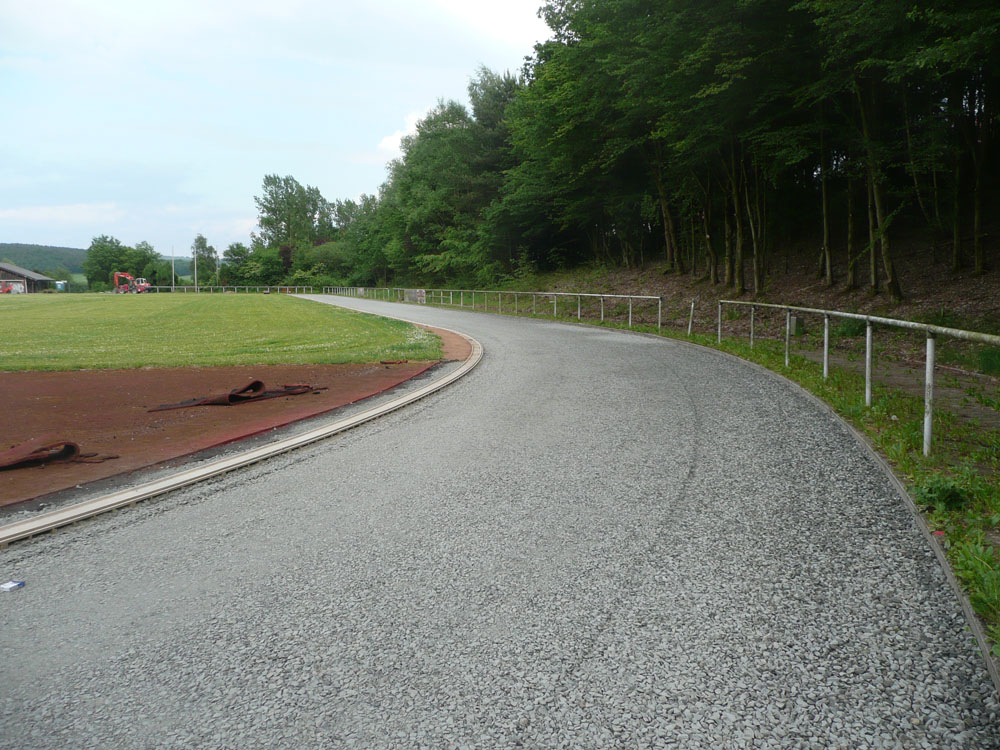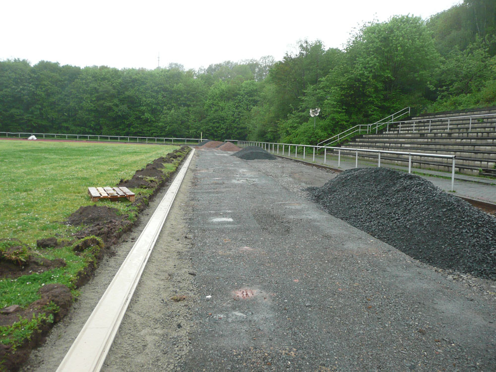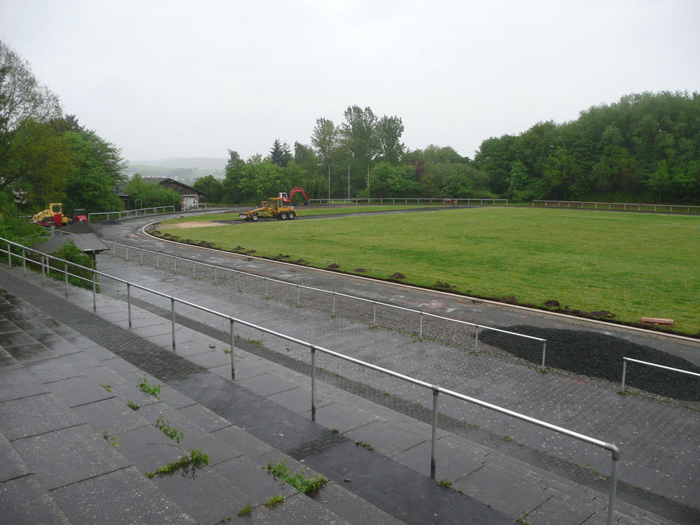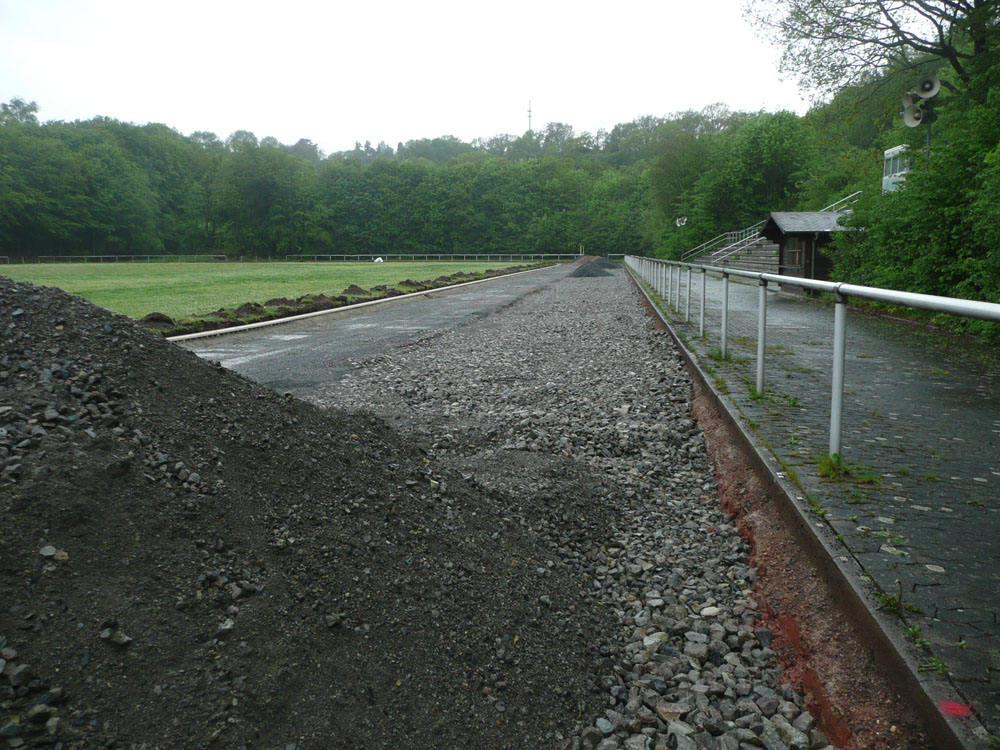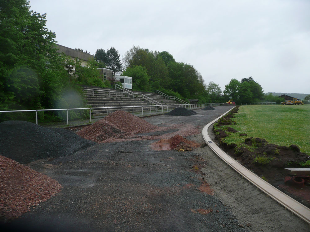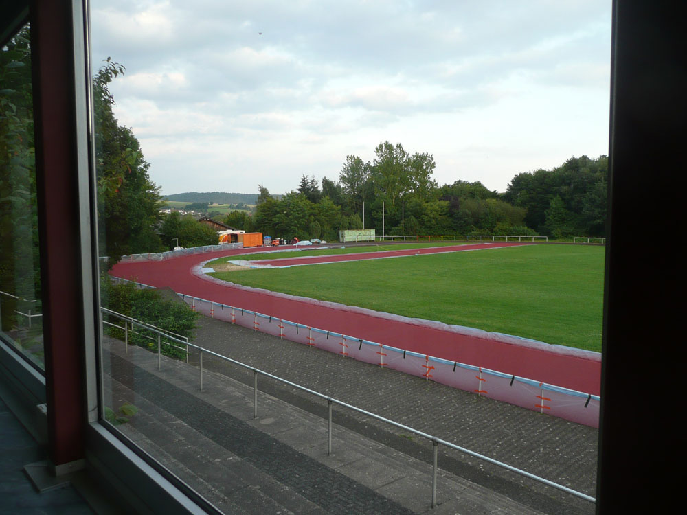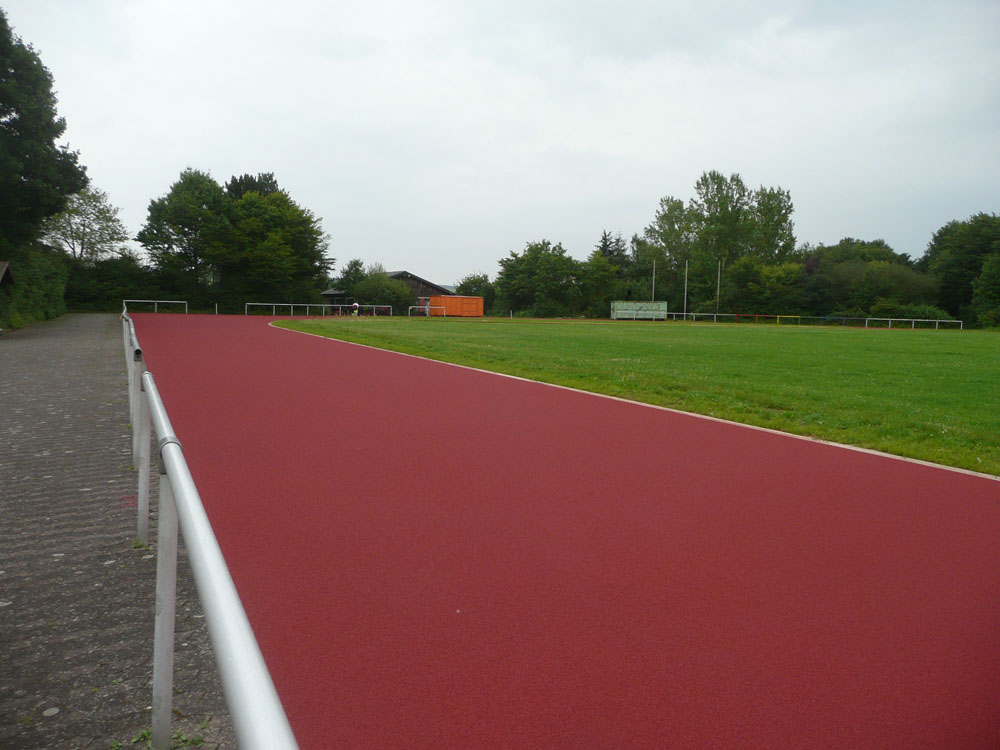 Nachdem im letzten Jahr in den Sommerferien mit den Sanierungsarbeiten der Laufbahn gestartet wrude, ist in diesem Jahr kurz vor den Herbstferien das Ziel erreicht: Das Wollenbergstadion erstrahlt im frischen Rot der neuen Polytan-Kunststoffbahn! Auch die Außenanlage mit der Sprunggrube ist wieder in einem ansehnlichen Zustand!