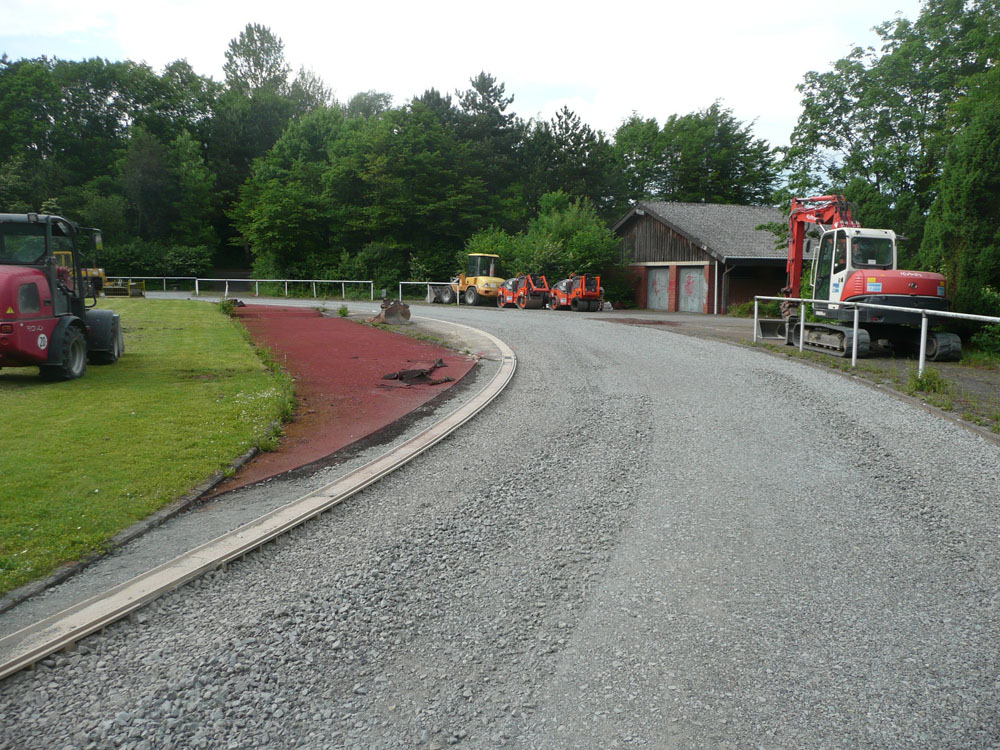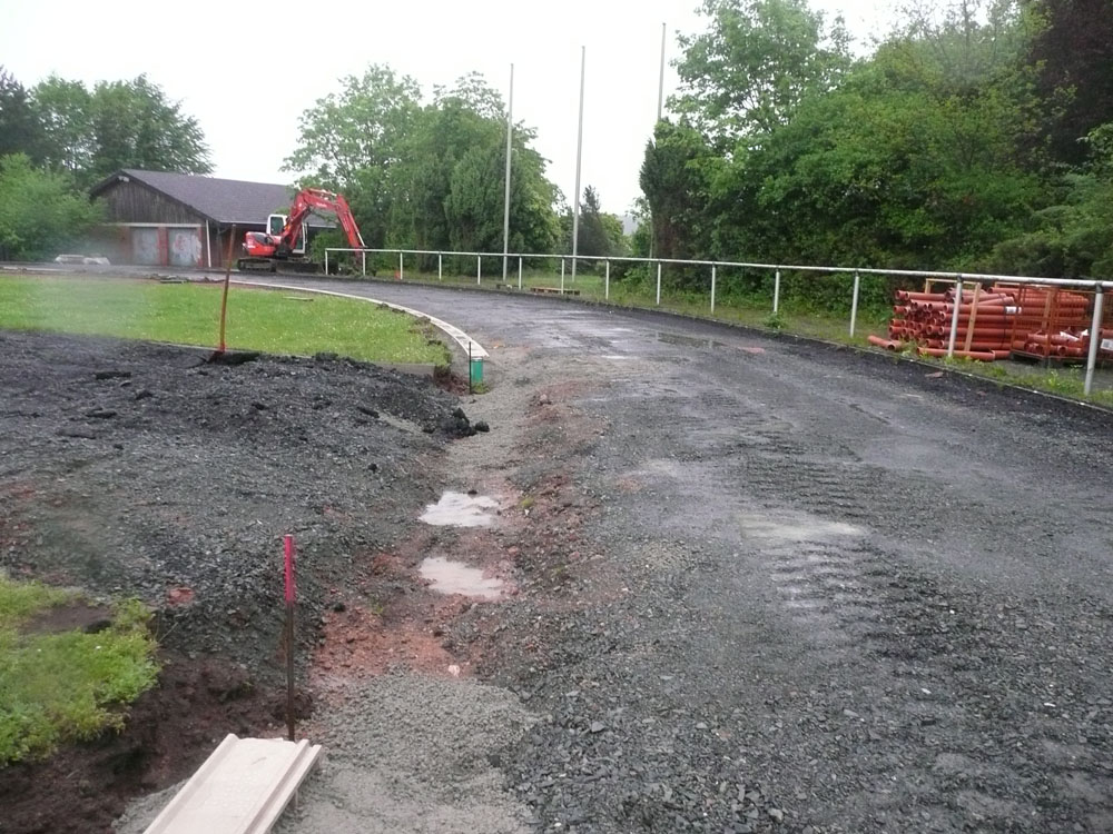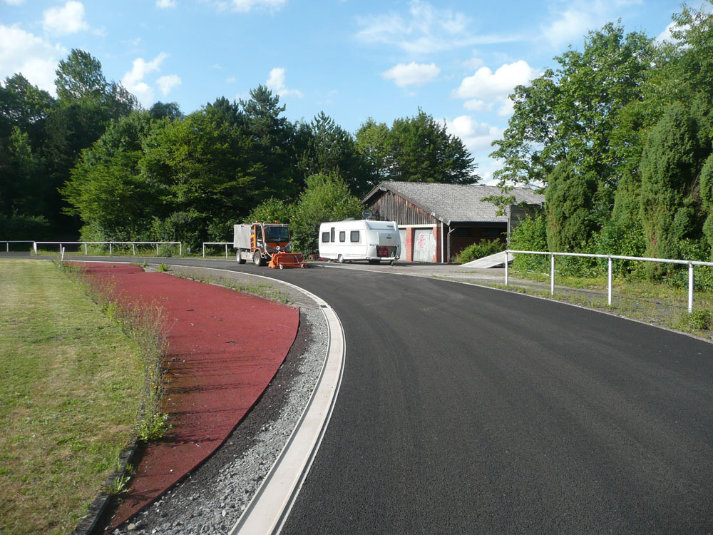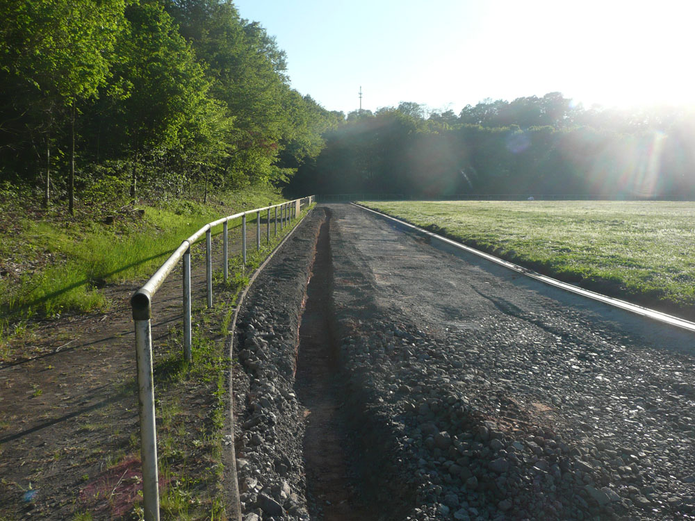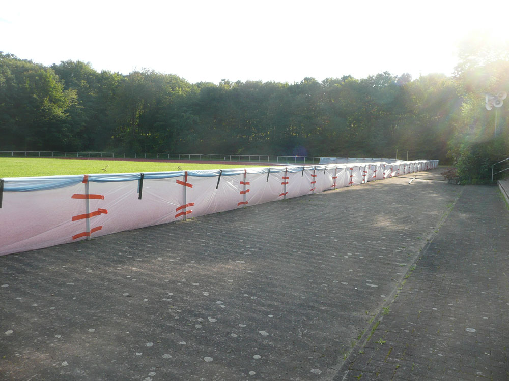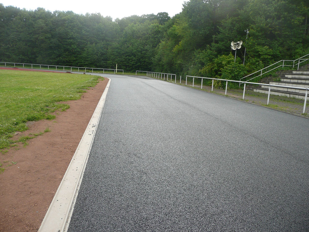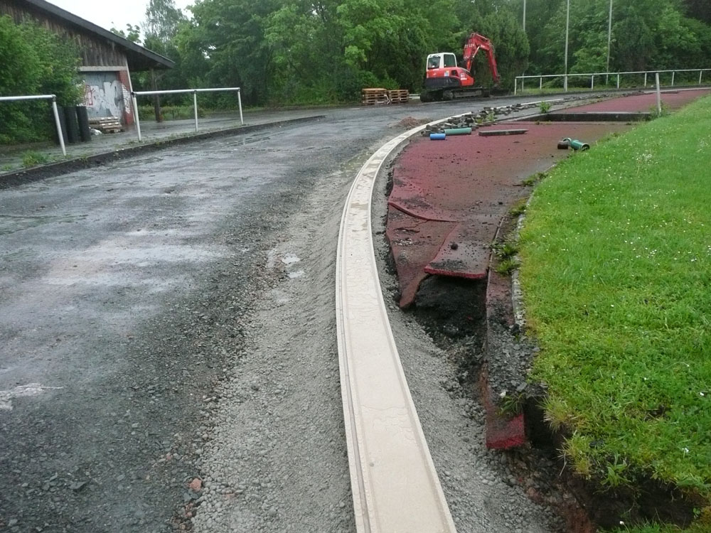 Nachdem im letzten Jahr in den Sommerferien mit den Sanierungsarbeiten der Laufbahn gestartet wrude, ist in diesem Jahr kurz vor den Herbstferien das Ziel erreicht: Das Wollenbergstadion erstrahlt im frischen Rot der neuen Polytan-Kunststoffbahn! Auch die Außenanlage mit der Sprunggrube ist wieder in einem ansehnlichen Zustand!