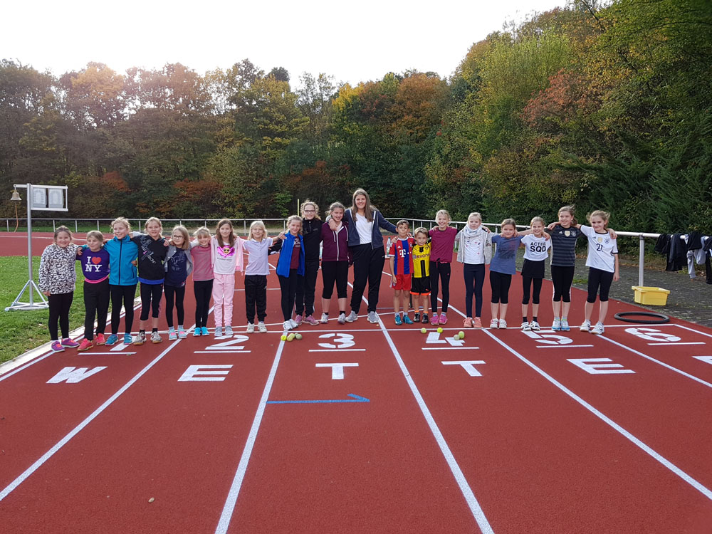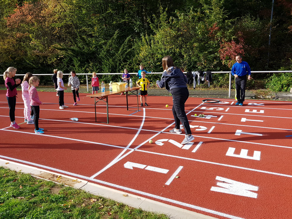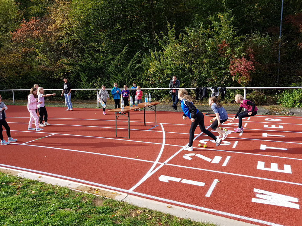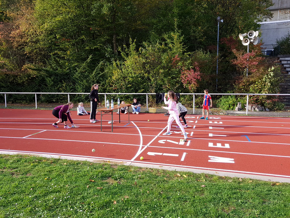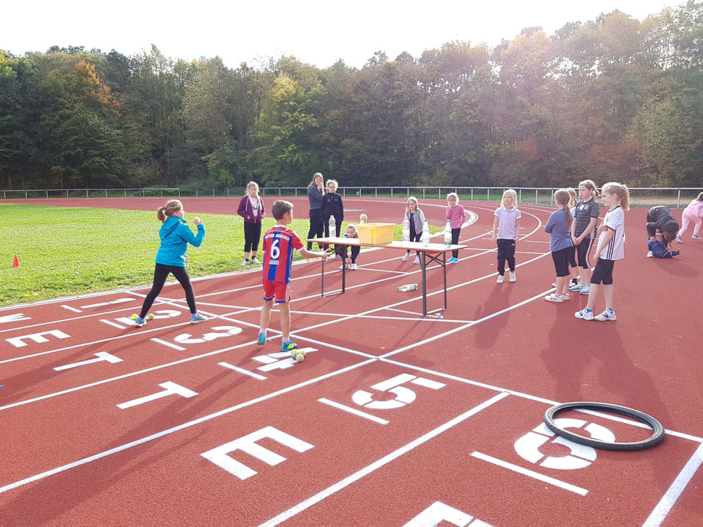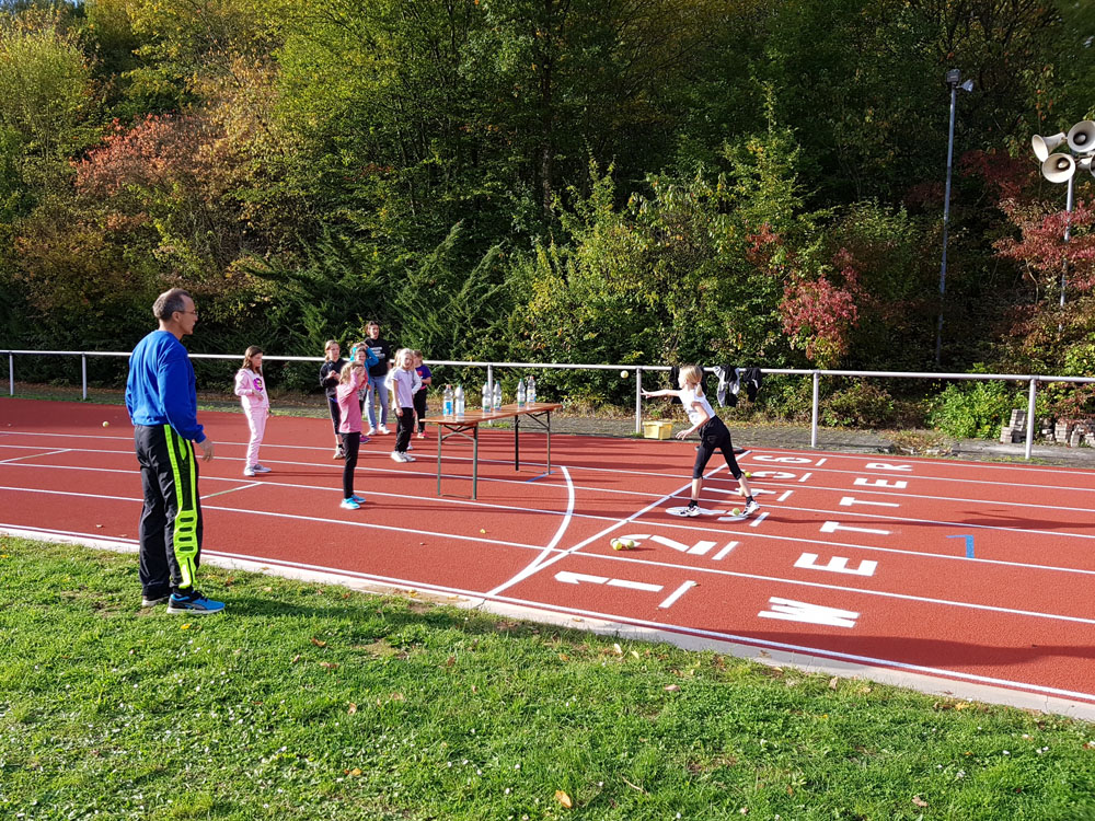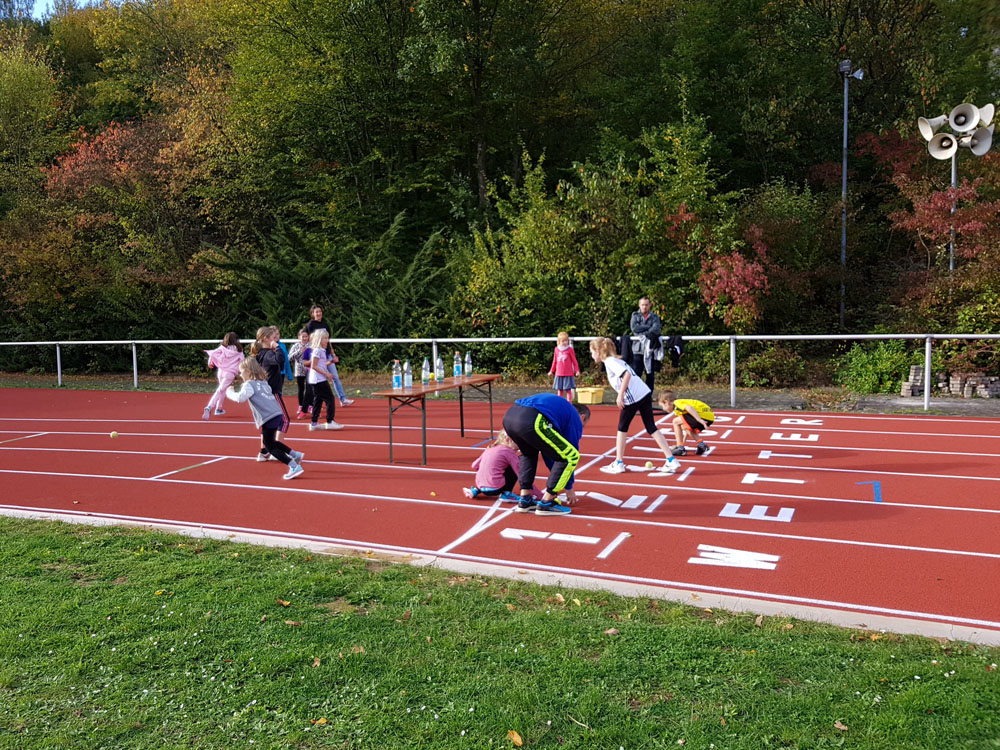 Mit 20 Jugendlichen aus der Jugendturn-Gruppe von Andrea Müller und aus der Jugend-Leichtathletik-Gruppe von Anna-Lena Wellner startete das vereinsinterne Lauffest mit einer Biathlon-Staffel. Hier mussten 4er-Teams eine Laufstrecke absolvieren und am Ende Flaschen von einem Tisch werfen. Für jede Flasche, die stehenblieb, musste man eine kleine Strafrunde laufen.