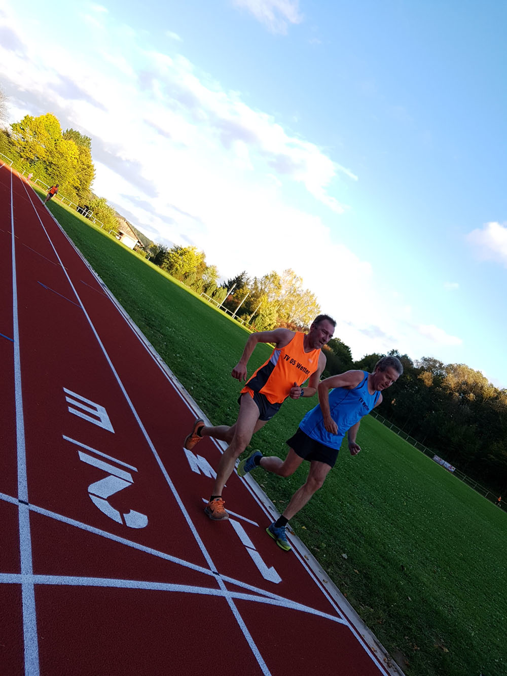 Zum Abschluss maßen sich die Läufer aus dem Turnverein über die 5.000 m auf der neuen weichen Bahn: